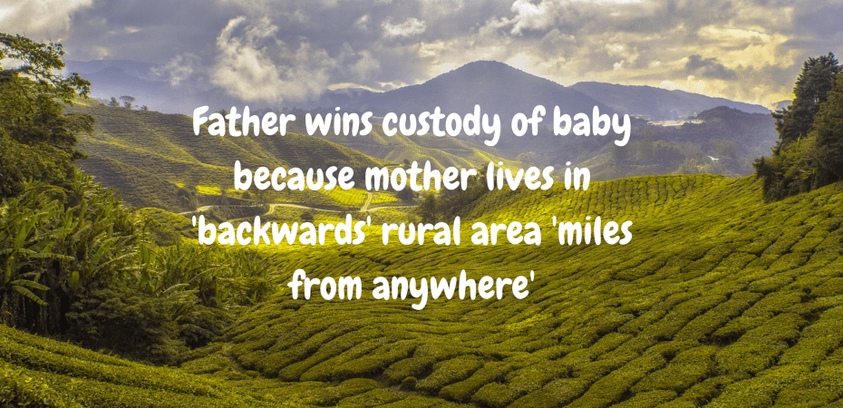 This ruling is an outrageous dismissal of the importance of the mother/child bond and not only separates a one-year old from his primary carer, but sends him 700 miles away to live with a father who works full-time, so presumably the baby will be put in full-time childcare! At that age what the child needs most is his mother’s loving care, and it’s completely irrelevant if she lives in the countryside or not!