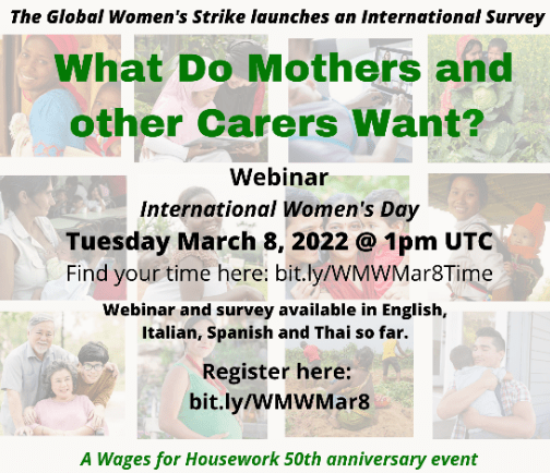 Come and have your say: What Do Mothers and other Carers Want? An international survey launched by the Global Women’s Strike (member of SNS)