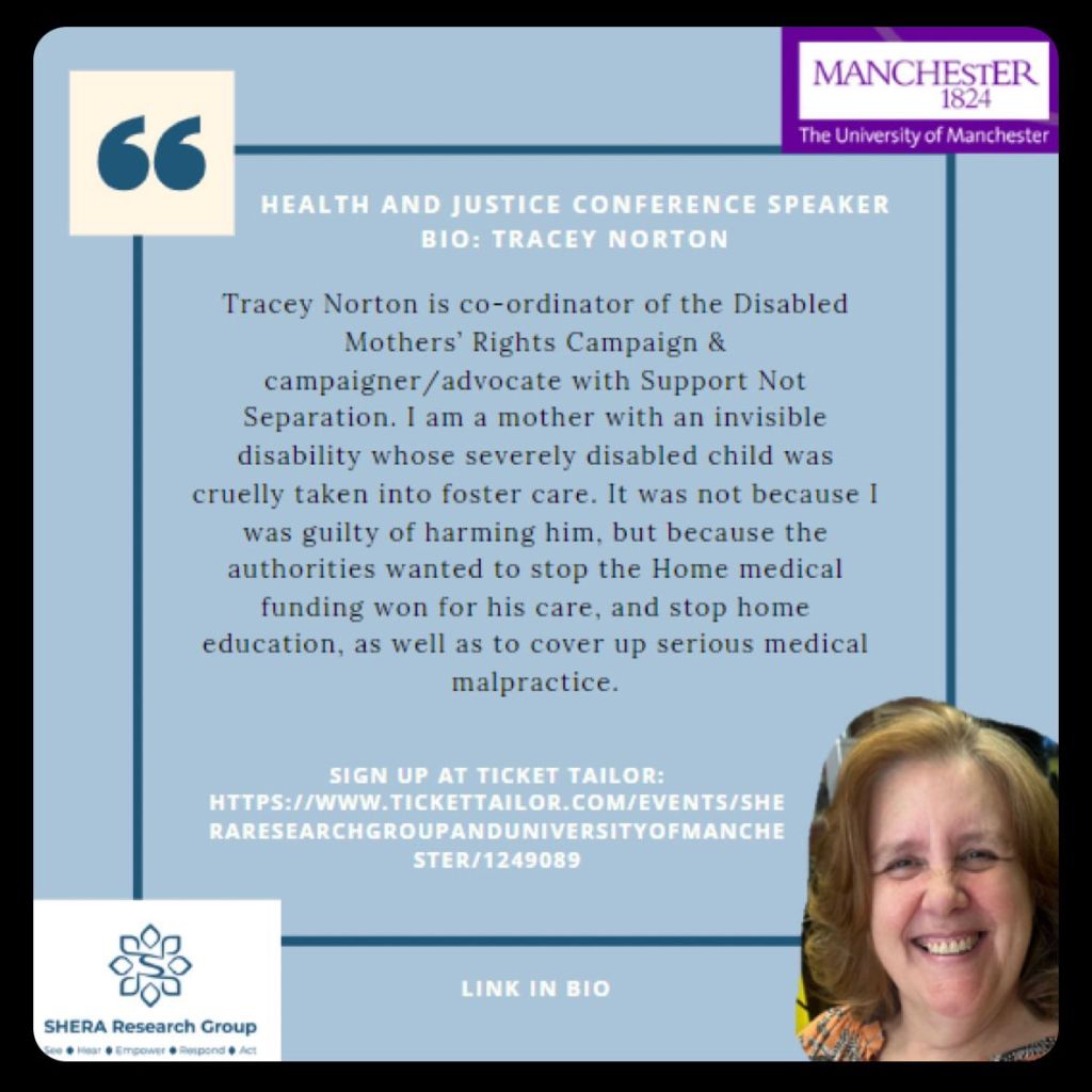 Tracey Norton is co-ordinator of the Disabled Mothers’ Rights Campaign & campaigner/advocate with Support Not Separation. I am a mother with an invisible disability whose severely disabled child was cruelly taken into foster care. It was not because I was guilty of harming him, but because the authorities wanted to stop the Home medical funding won for his care, and stop home education, as well as to cover up serious medical malpractice.